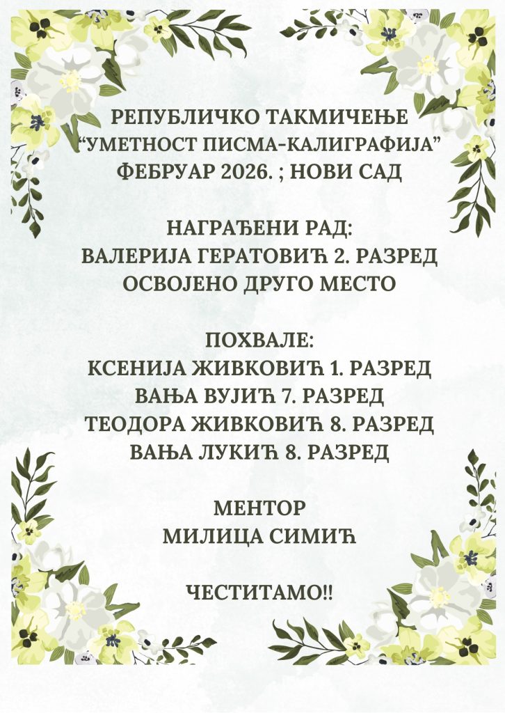 ПОЧЕТНА Извештај о спољашњем вредновању- школска 2025-2026. година Калиграфија Шах Инстаграм ОБАВЕШТЕЊЕ ДАН ЕВРОПСКИХ ЈЕЗИКА – 26. 9. 2025. OŠ "Stojan Novaković", Šabac Нострификација диплома
