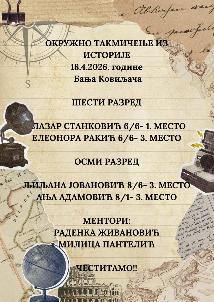 - Општинско такмичење из историје, 14. 03. 2026. године